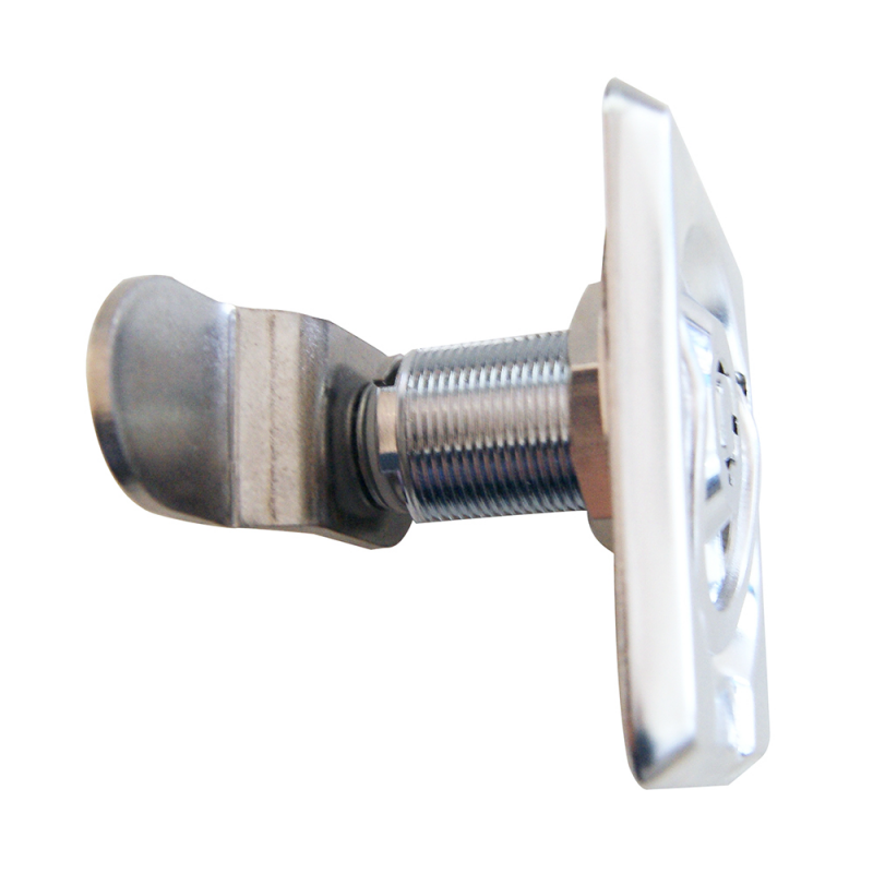 Serratura da incasso in acciaio inox, con maniglia a filo e cilindro.Dim. mm. 52x49.
