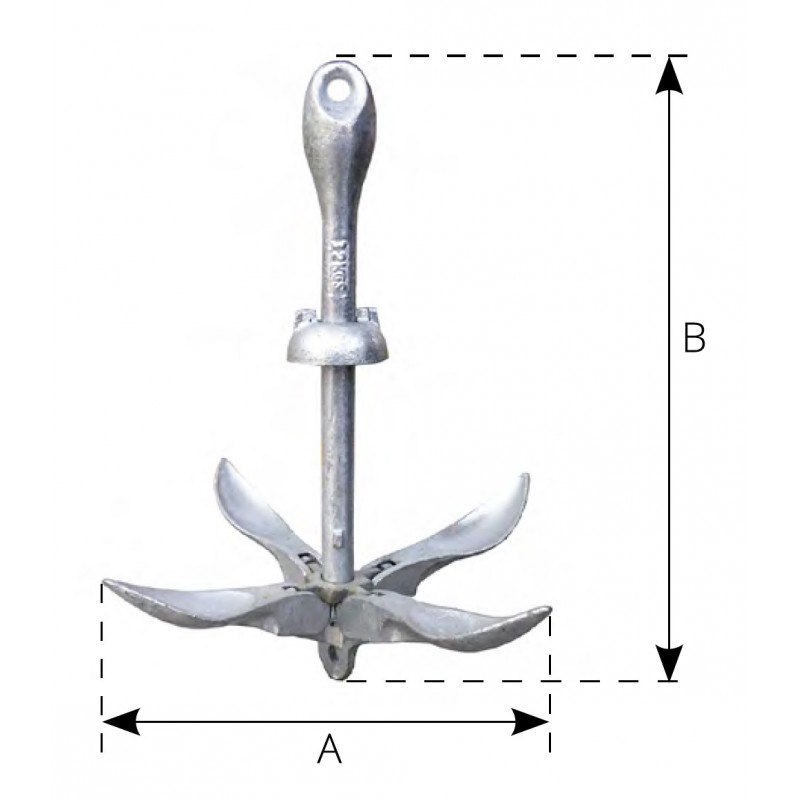 Ancora ombrello patte a cucchiaio in acciaio zincato richiudibile.