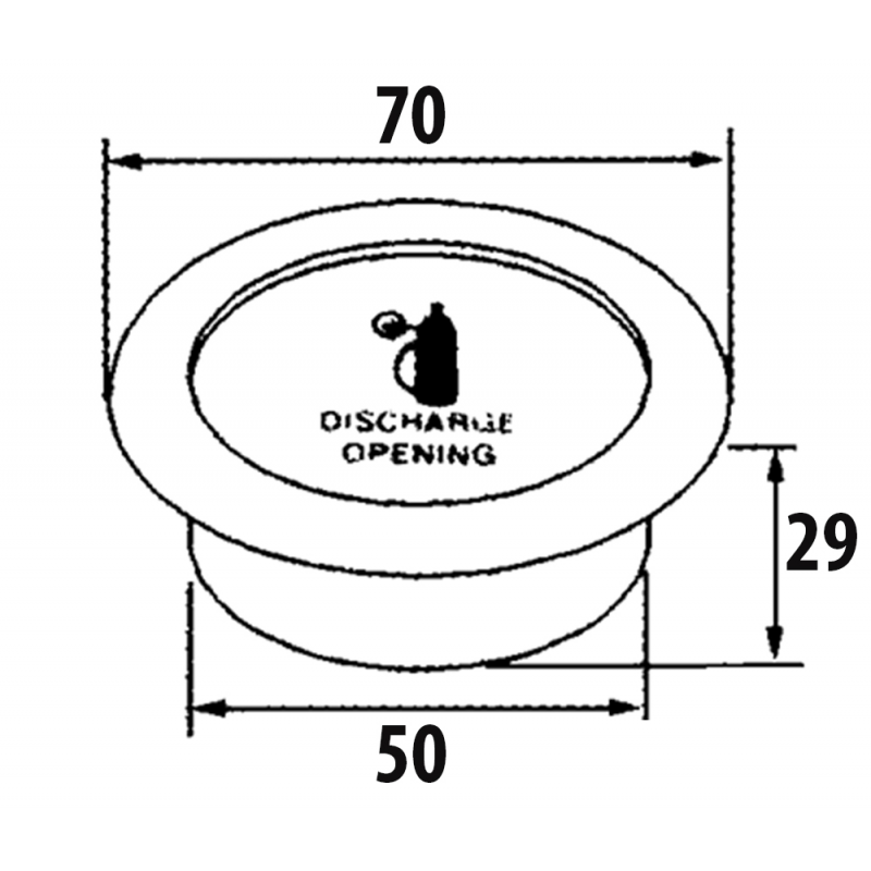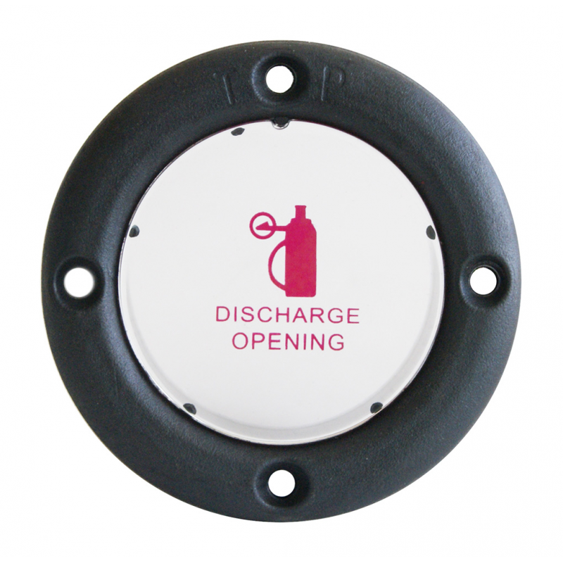 Anello anti incendio in nylon con copertura in acciaio inox e lente acrilica. Montato sul vano motore, in caso di incendio permette di entrare con l’estintore senza doverlo aprire.
