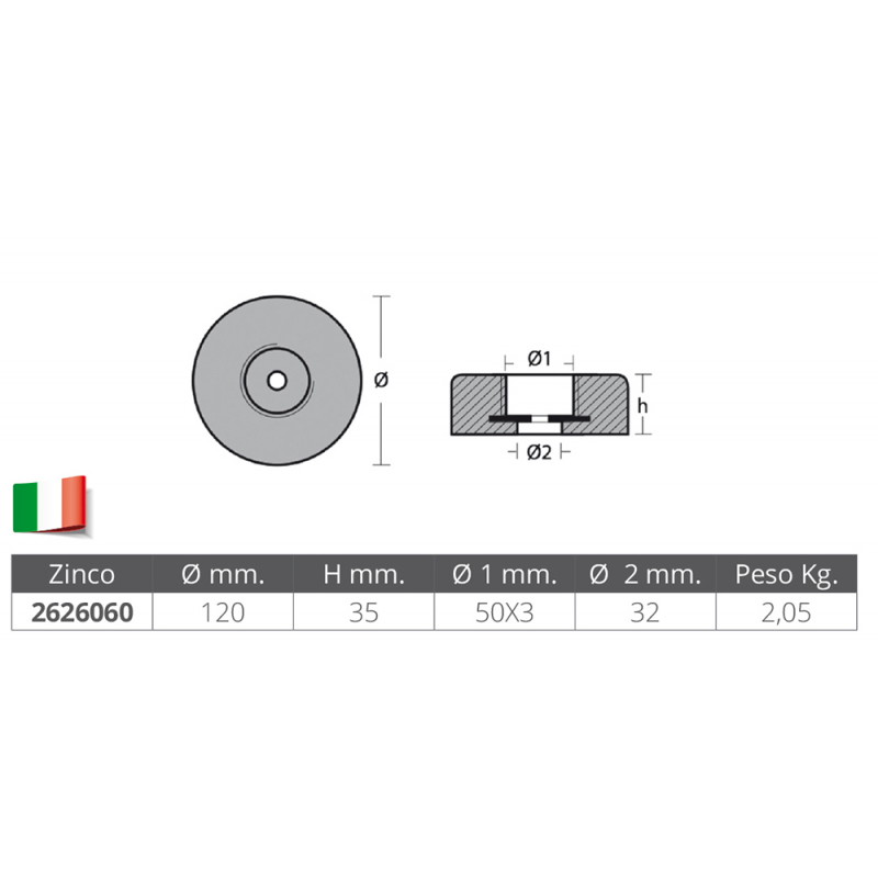 ANODO TONDO IN ZICO Ø MM.120