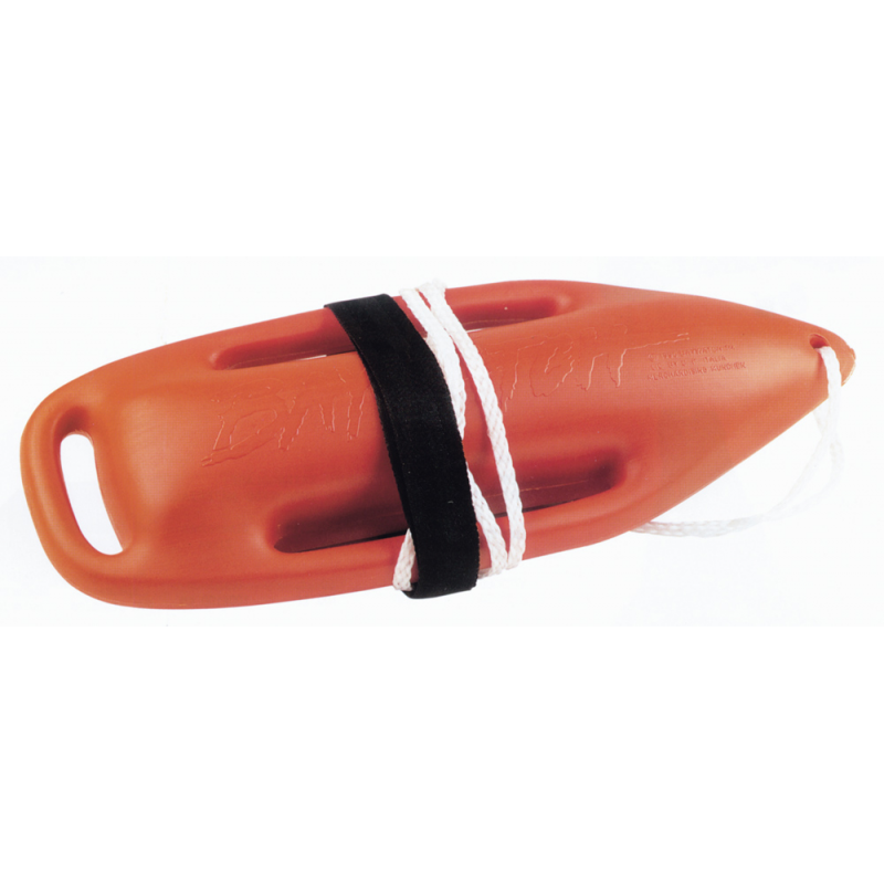 Salvagente professionale. La superficie particolarmente liscia e la speciale conformazione facilitano il traino del salvagente fino alla persona da salvare. Completo di cima cm. 200 e tracolla. Dim. mm. 680 x 130 x 230 peso kg. 1,2