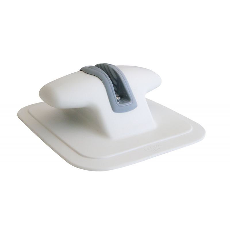 Bitta in PVC griogio RAL 7035 con strozzascotte adatto per cime Ø max. mm.15/16. Dim. mm. 240 x 192 x 70H