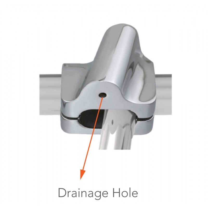 Boccola in acciaio inox AISI 316 su tubo con foro inferiore per drenaggio acqua.