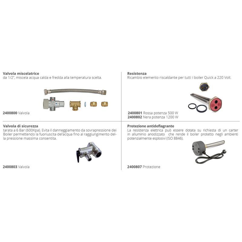 Boiler in materiale composito e serbatoio in acciaio inox AISI 316 con scambiatore di calore. Selle e fasce in acciaio inox, incluse di serie. Raccorderia in uscita da 1/2”