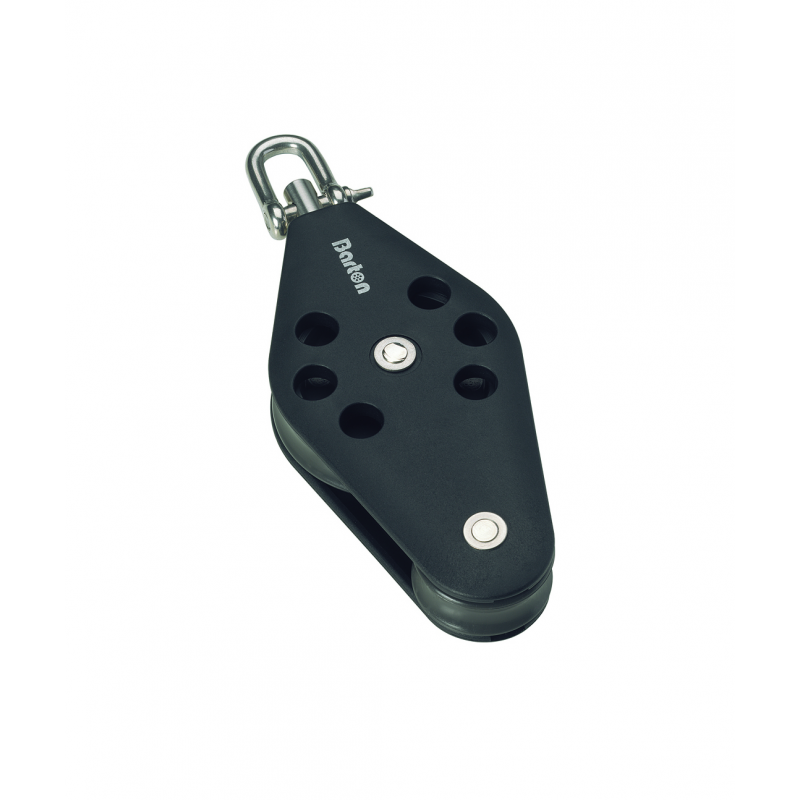 SERIE 2 - Bozzello doppio girevole con arricavo, Ø cima max mm. 8, max carico di lavoro kg. 370 carico di rottura kg. 740, dimensioni puleggia mm.35 x 12, lunghezza mm. 134