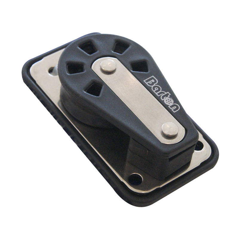 SERIE 2 - Bozzello singolo con piastra per montaggio in piano, Ø cima max mm. 8, max carico di lavoro kg. 370 carico di rottura kg. 740, dimensioni puleggia mm.35 x 12, lunghezza mm. 80