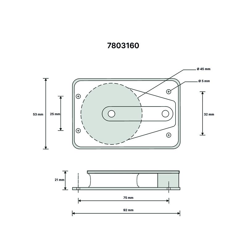 SERIE 3 - Bozzello con puleggia, Ø cima max mm. 10, max carico di lavoro kg. 400, carico di rottura kg. 800, dimensioni puleggia mm. 45 x 13, lunghezza mm. 92