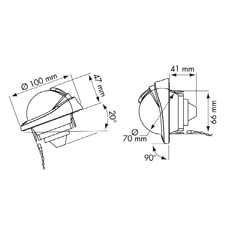 Con Ø apparente mm 70. Rosa conica con graduazione ogni 5°, per barche a motore da 5 a 8 mt, illuminazione di serie a 12 V. Installazione ad incasso su piani inclinati da 20° a 90° o verticali