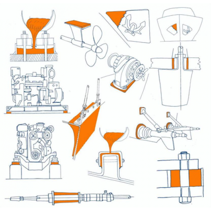 Sistema epossidico bicomponente, senza solvente, caricato con inerti minerali, 100% residuo secco. Sviluppato e formulato per livellamenti, inglobamenti, allineamenti, accoppiamenti perfetti per metallo, vetroresina e legno. Sopporta forti carichi di compressione, shock termici, urti, vibrazioni, trazioni, anche in presenza di acqua e olii. Approvato RINA,RINAMIL.