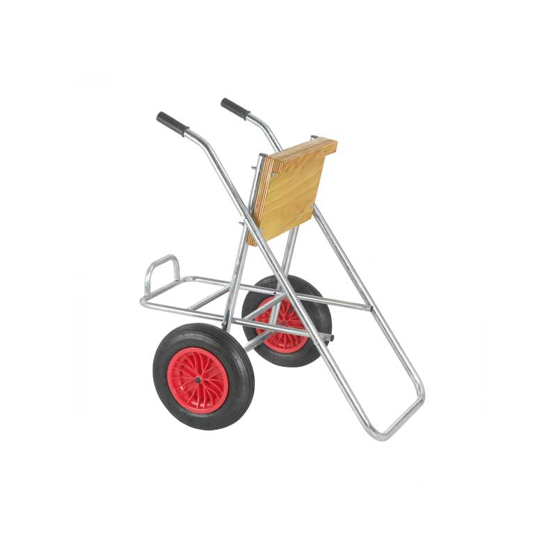 Portata fino a 150 HP. Tubo Ø mm. 30, ruote in gomma gonfiabili Ø mm. 350, porta serbatoio tavoletta in legno mm. 500 x 250.