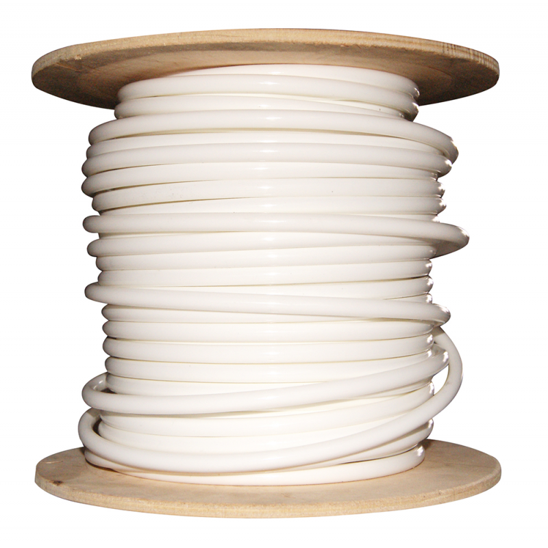 Cavo Parafil costituito da un insieme di fibre sintetiche ad alta tenacità, racchiuse in una guaina protettiva in materiale plastico bianco, con caratteristiche di resistenza molto alta vicina a quella dell’acciaio, peso molto basso, buon isolante e resistente ai raggi UV. Dimensioni: Ø 7 mm. carico di rottura 500 Kg. Rotolo 50 mt.