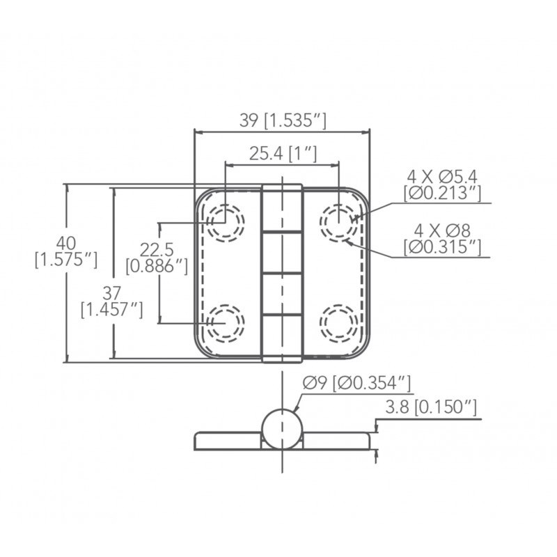Cerniere con copertura in acciaio inox AISI 316 spessore mm.2. Tramite il nastro biadesivo 3m vhbpremontato sulla copertura stessa, permette di nascondere le viti della cerniera dopo il montaggio, congrande effetto estetico. dim. mm. 36x37