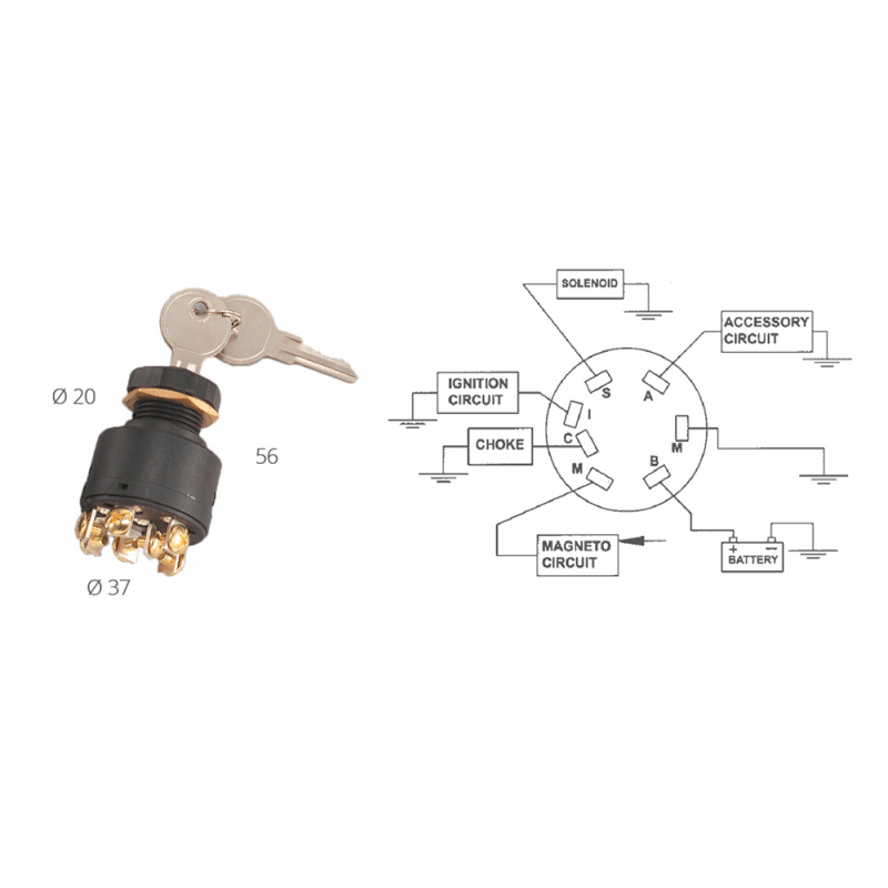 Chiave avviamento universalein polipropilene per motori fuoribordo.12 V. 7 terminali, 3 posizioniOFF-ON-START. (Rif. or. 87-88107/A5)