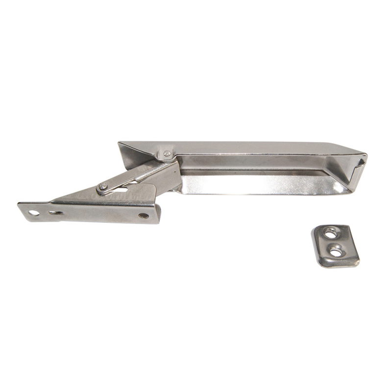 Chiusura in acciaio inox a leva, antivibrante per ante e gavoni, con piastrina di aggancio.Dim. lungh. mm. 100, largh. mm. 29, H mm. 11