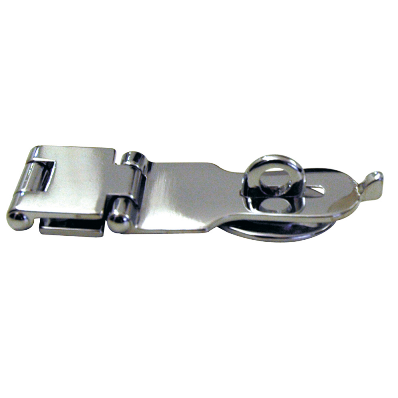 Chiusura piana in ottone cromato con portalucchetto. Dimensioni mm. 150x35.