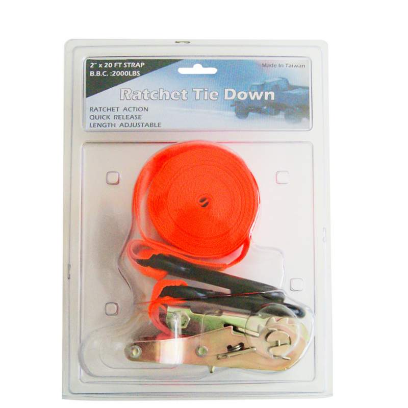 Cinghia di fissaggio in poliestere, sistema di arresto e di regolazione della tensione con cricchetto tenditore e ganci di ancoraggio in acciaio zincato. Lunghezza cm 600 larghezza cm 5, carico di rottura kg 900