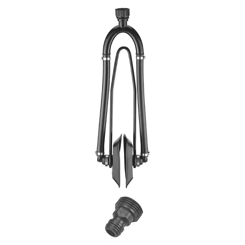 Cuffia lavaggio motori fuoribordo e gruppi poppieri con afflusso di acqua da entrambi i lati con attacco rapido tipo giardinaggio. Forcella in acciaioplastificato con ventose rettangolari in gomma. Dimensioni ventose mm. 120 x 80