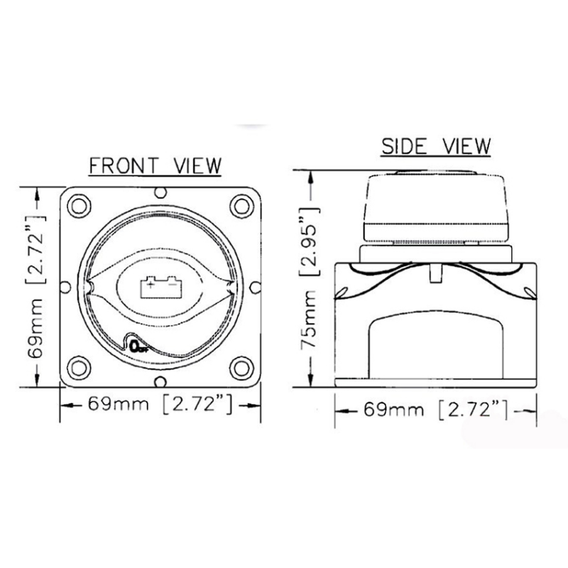 Deviatore Stacca batteria BEPil sistema brevettato permette il montaggio modulare di più interruttori. La manopola non può essere rimossa nelle posizioni 1-2 e OFF, ma solo ruotandola in senso antiorario di 45°. Montaggio in piano o ad incasso (foro Ø mm. 52). 200 AMP in servizio continuo, 1000 AMP di spunto. Terminali di collegamento: 3x8 mm. Posizioni di funzionamento : OFF - 1 - 2 - 1&2 (both)