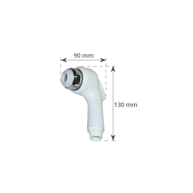 Doccia dritta con leva, a 2 getti e impugnatura in ABS bianco, con pulsante push-off. Attacco 1/2” maschio. Ricambio per 2424170/2424335.