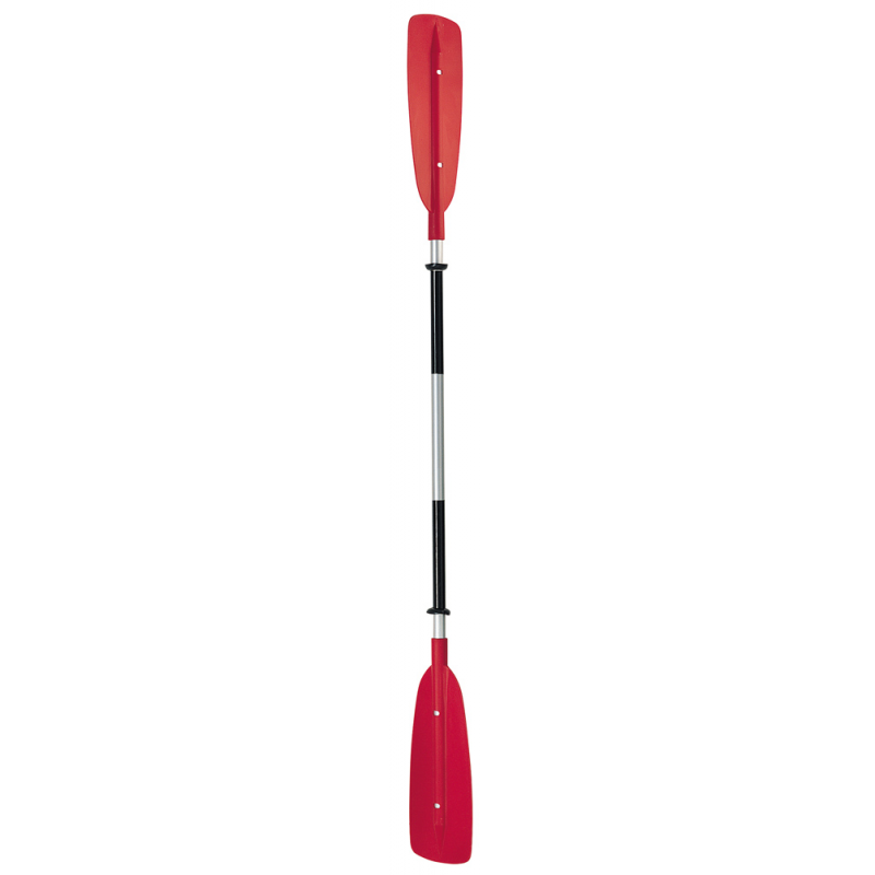 Doppia pagaia fissa in lega leggera anodizzata, tubo Ø mm. 30, lungh. cm. 210, con pale in ABS di colore rosso. Peso 1350 gr.