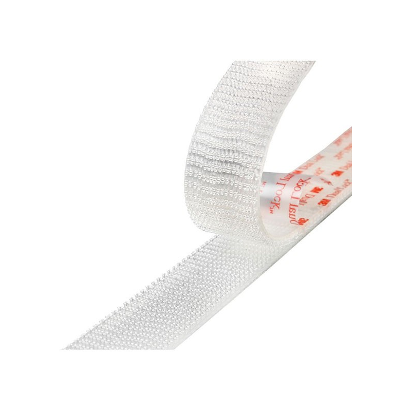 DUAL LOCK sistema di fissaggio richiudibile su se stesso composto da due parti adesive con peduncoli che accoppiati consentono diversi tipi di fissaggio. Valida alternativa ai tradizionali sistemi di fissaggio, si adatta a tutte le superfici, sia rigate che flessibili. Sopporta carichi e pesi elevati. Altezza mm. 25. Rotolo da 45,7 mt. Venduto al metro