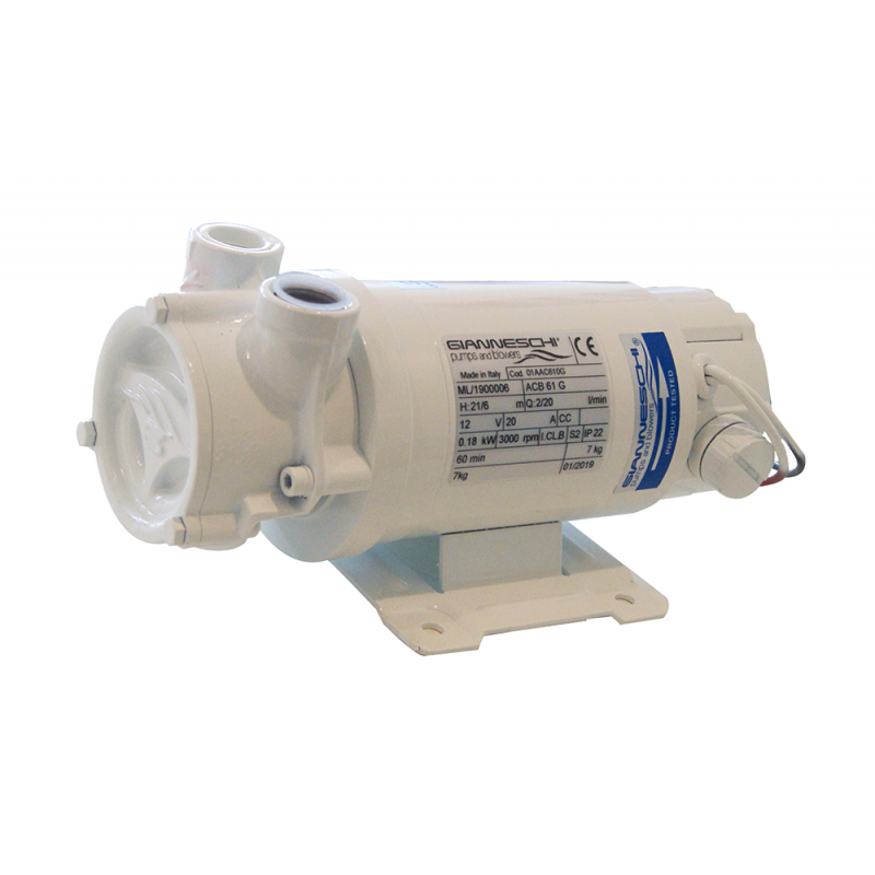 Elettropompa ACBautoadescante con corpo pompa in bronzo e girante in lega di ottone. Tenuta meccanica di alta qualità in ceramica, grafite, inox. Idonea per lavaggiocatene, antincendio, travaso gasolio e svuotamento sentina. Consigliato installare un filtro e valvola di non-ritorno sulla bocca d’aspirazione.