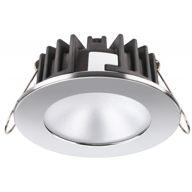 Faretto stagno IP66 a 2 POWER LED ( 340 Lumen ) ad altissima luminosità, luce bianca naturale con cornice circolare in acciaio inox AISI 316 lucido.Sensibile alla polarità. Fissaggio con molle