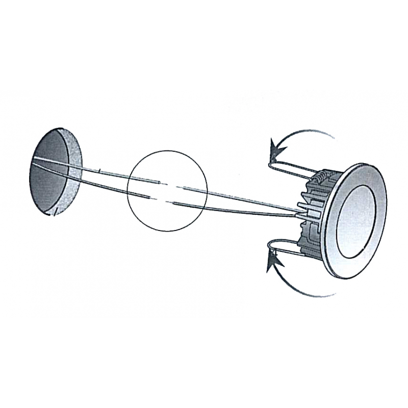 Faretto stagno IP40 a 2 LED ( 100 Lumen ) ad alta luminosità, luce bianca calda con cornice circolare in plastica a finitura bianca RAL 9010.Sensibile alla polarità. Fissaggio con molle