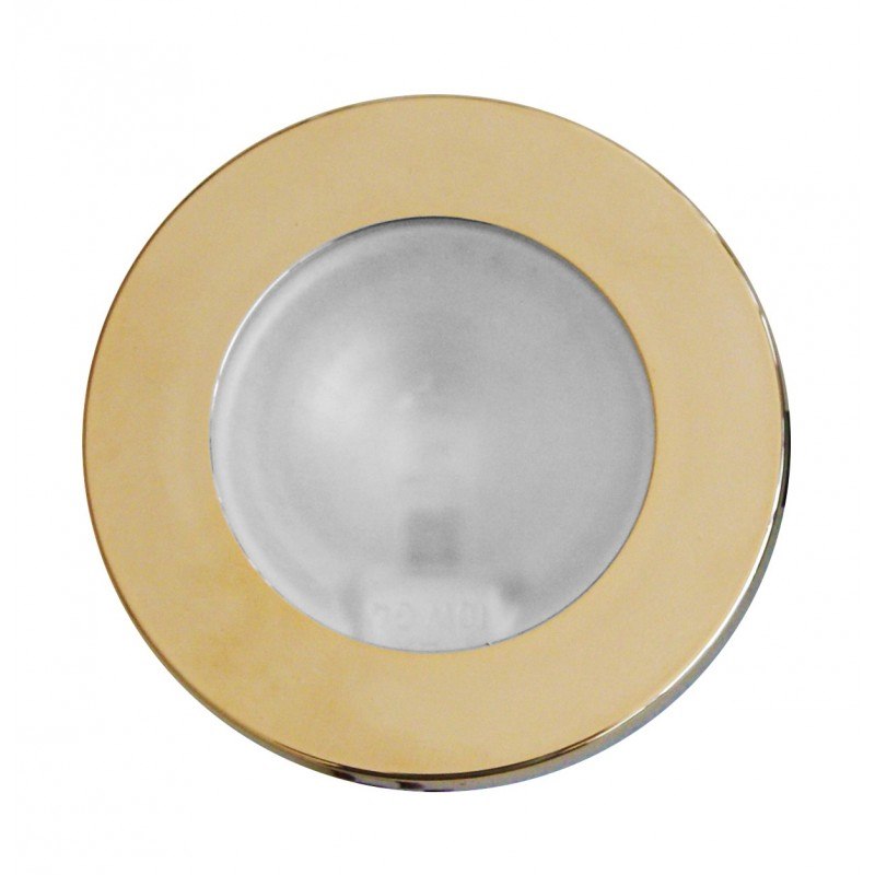 Faretto alogeno in materiale termoplastico ad incasso, Ø foro mm. 54.Vetro di protezionesabbiato, completo di lampadina alogena. 3 fori di fissaggio. Ricambio lampadina a LED 4090322.