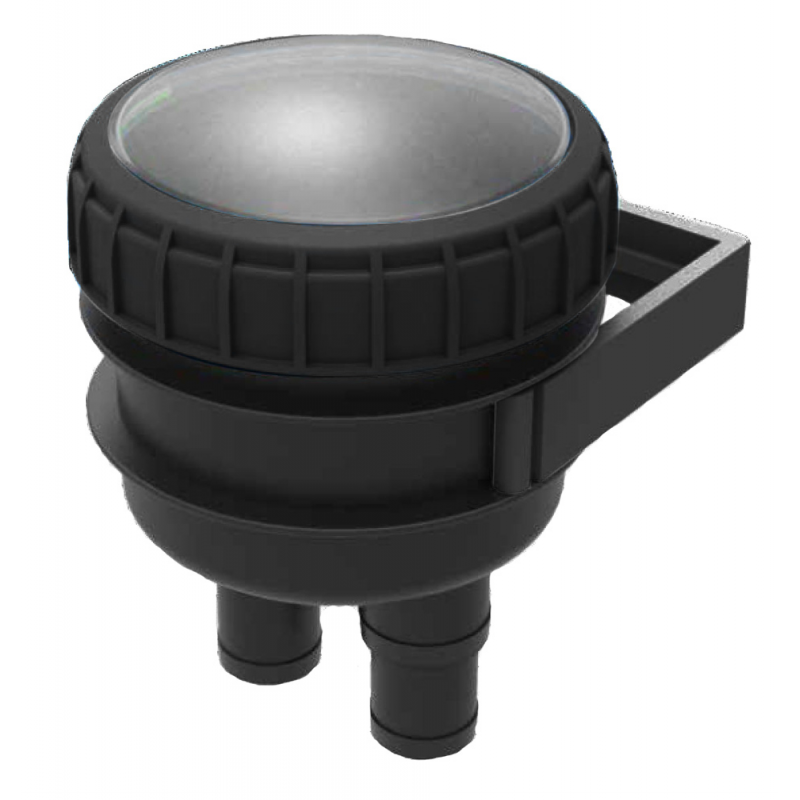 Filtro acqua in polipropilene, coperchio trasparente e portagomma (pressofusi) in due misure, adattabili, tagliando la parte non richiesta, in base alla portata necessaria. Filtrante in nylon, indicato per raffreddamento motori.
