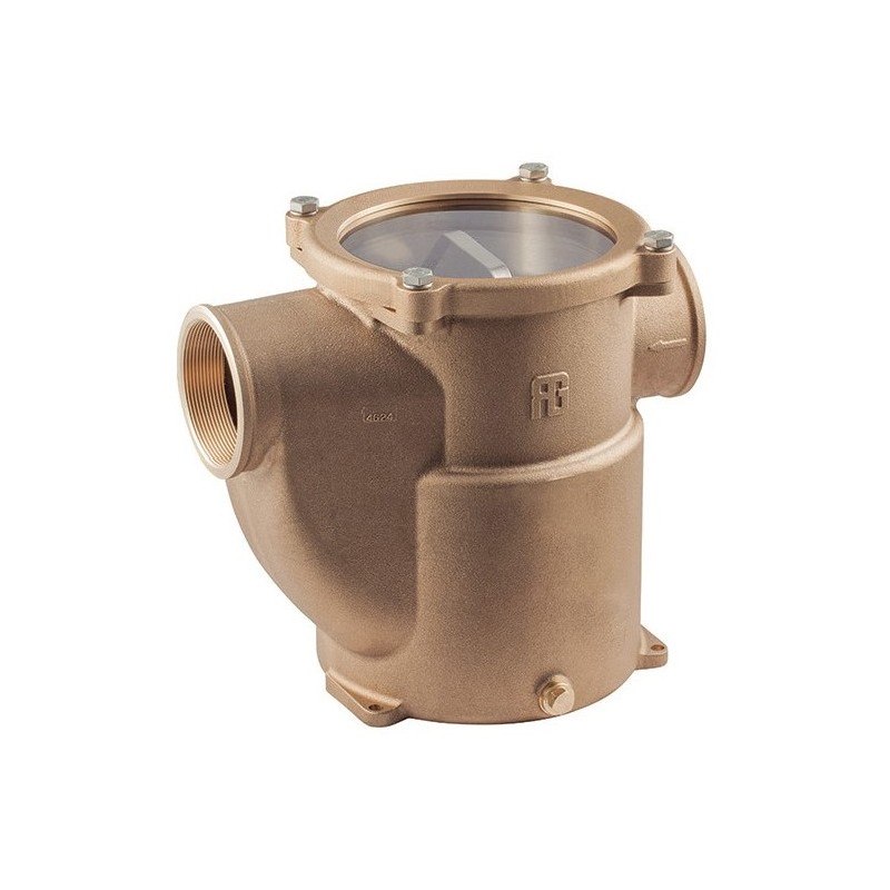 Filtro depurazione acqua "Mediterraneo" in bronzo nichelato, coperchio in policarbonato trasparente, elemento filtrante e viteria in acciaio inox AISI 316 L. Omologato R.I.Na. con certificato n. MAC/13997/1/TO/97