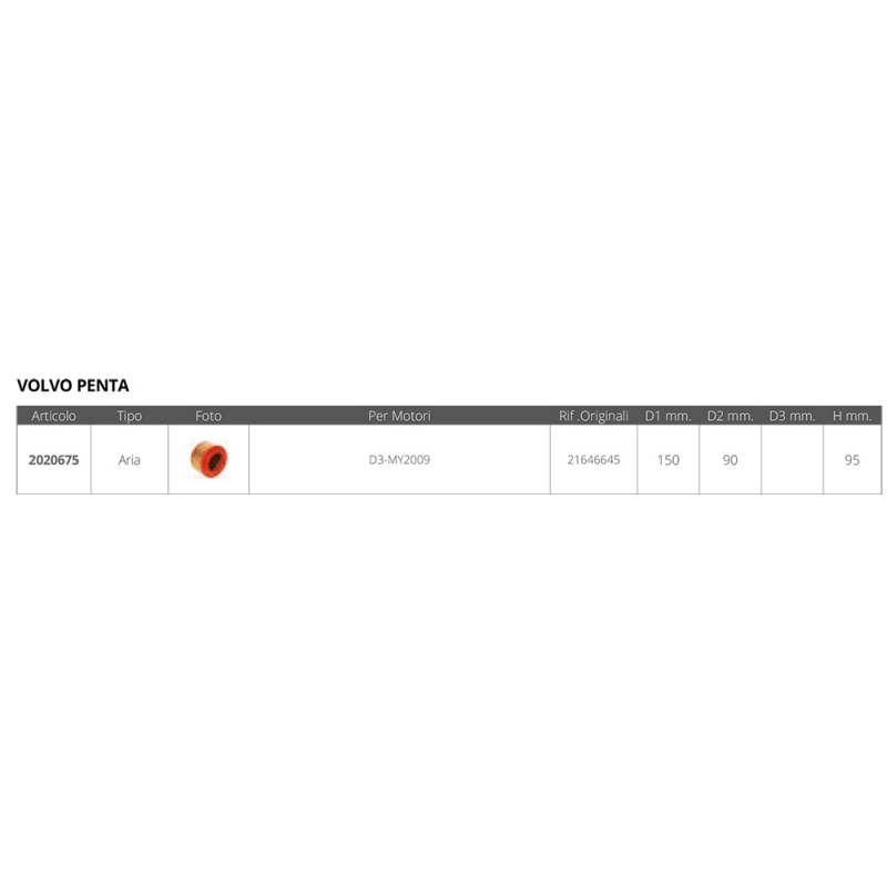 Filtro aria dim.Ø est.mm.150 Ø foro interno mm. 90 altezza mm.95