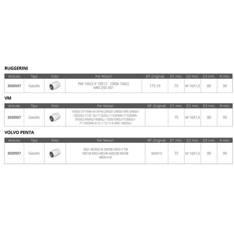 Filtro gasolio dim.Ø est.mm.75 Ø guarnizione mm. 80 altezza mm.90 passo M 16 X 1,5