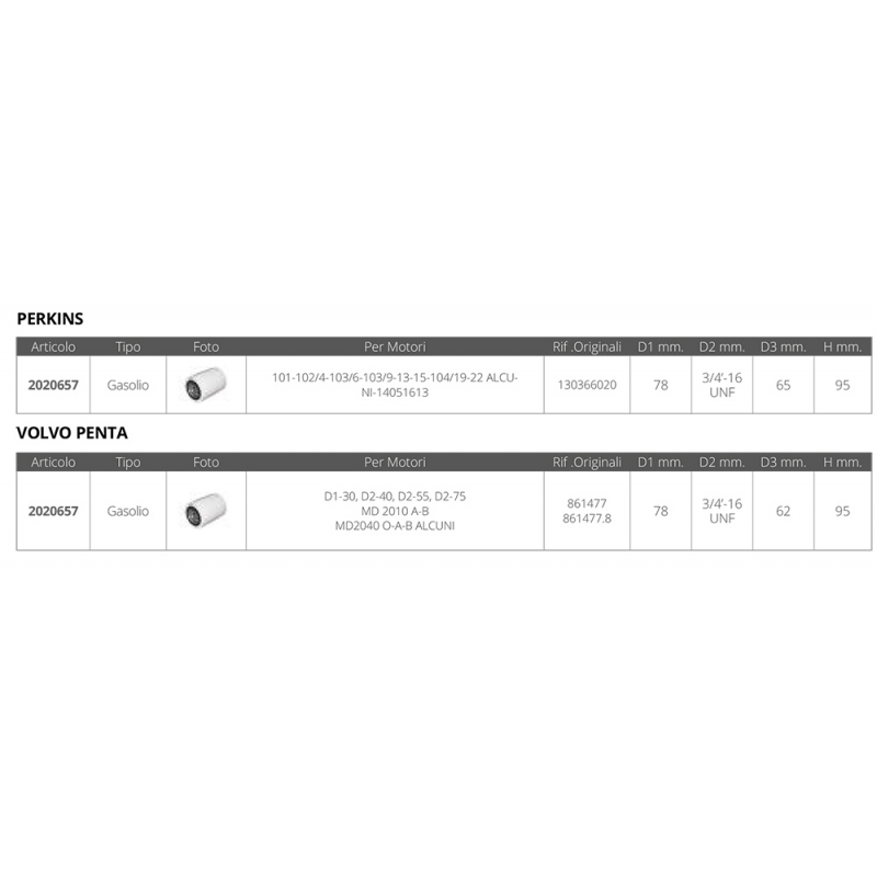 FILTRO GASOLIO PERKINS VOLVO