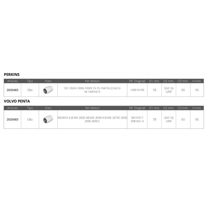 FILTRO OLIO PERKINS VOLVO