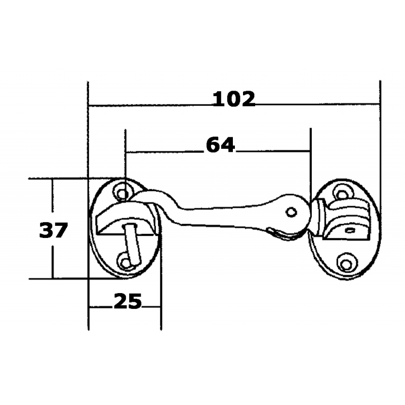Gancetto fermaporta in acciaioinox AISI 316 a doppio snodo, lungezza totale mm. 102