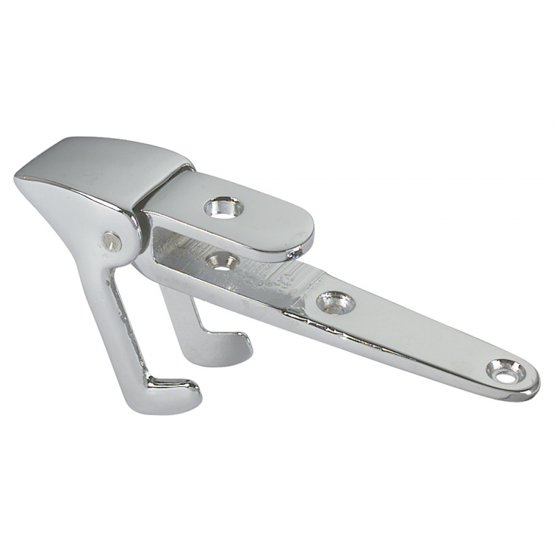 Gancio di sicurezza in ottone cromato per scalette. Dim. mm. 120x40x32.