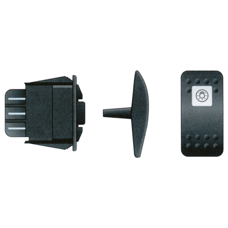 Interruttore basculante curling switch “CONTURA II”Ideale per il montaggio esterno, stagno IP66, garantisce una buona resistenza agli agenti atmosferici. Foro per montaggio mm. 21x37x39 prof. Alimentazione 12V, 20 Amp o 24V, 15A. Completo di LED rosso ad accensione indipendente solo a 12V (terminale 8+ 7-). Gli interruttori sono forniti senza bascula da ordinare separatamente.