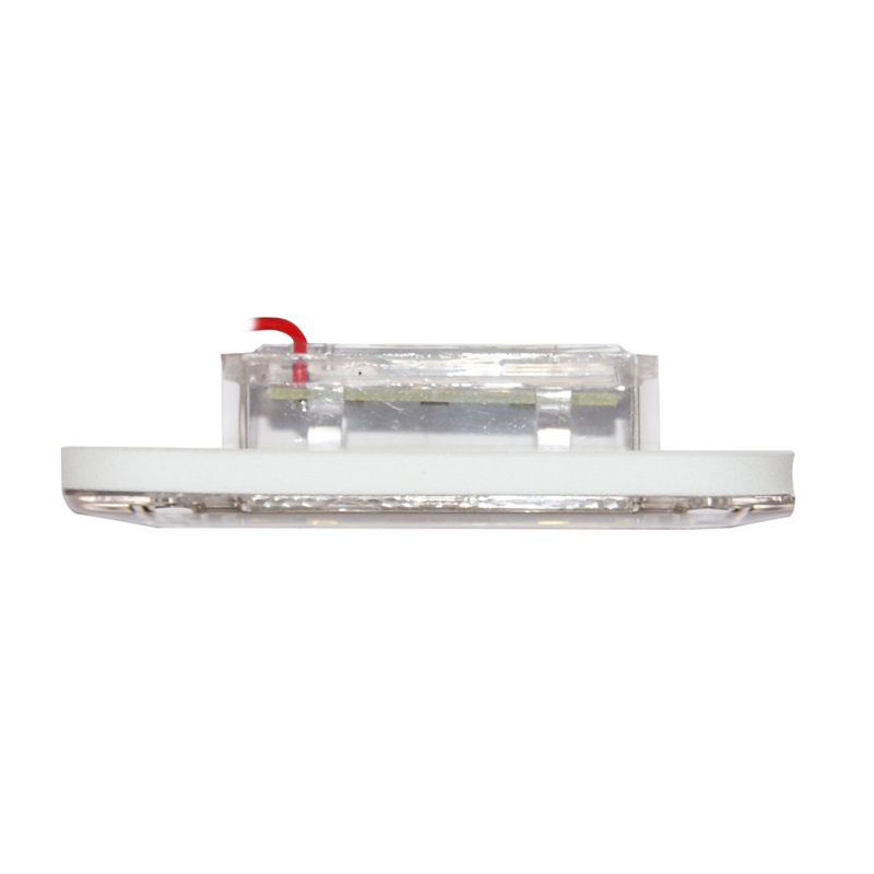 Luce di cortesia stagnaa 2 LED in policarbonato trasparente, per illuminazione pozzetti, localimotore, ripostigli, ecc... 2 fori di fissaggio. Dim. lung. mm. 82 x 28 h. Incasso mm 50x16. Compresa lampadina 12V.