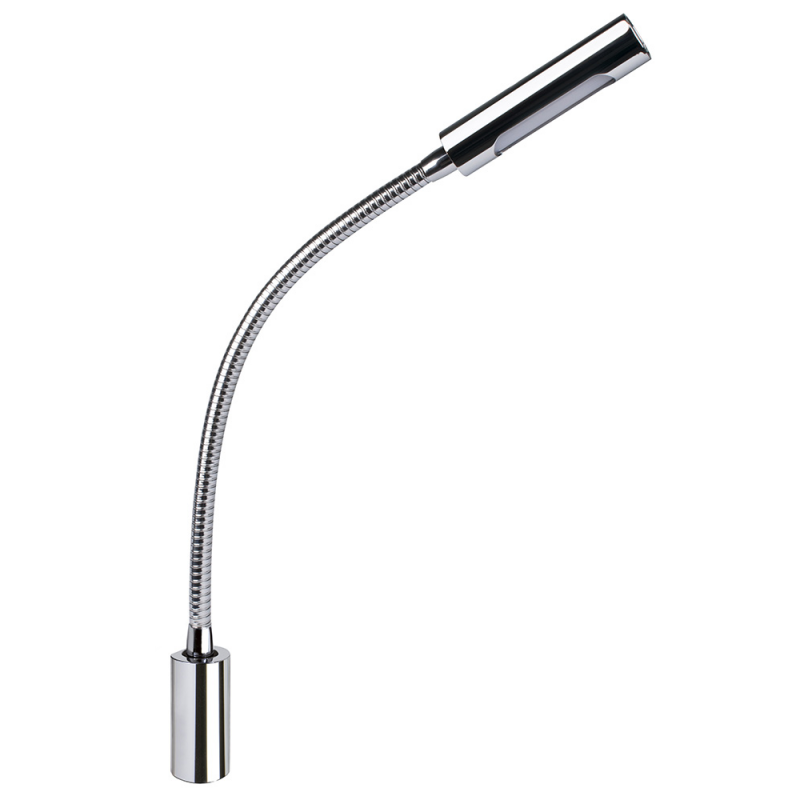 Luce da lettura stagna IP 40, flessibile, fabbricata in acciaio inox AISI 316, dotata di interruttore touch che aziona due tipi di illuminazione, bianca naturale e rossa, a 6 + 2 RED POWER LED ( 110 LUMEN ). Sensibile alla polarità. Fissaggio a parete con viti.