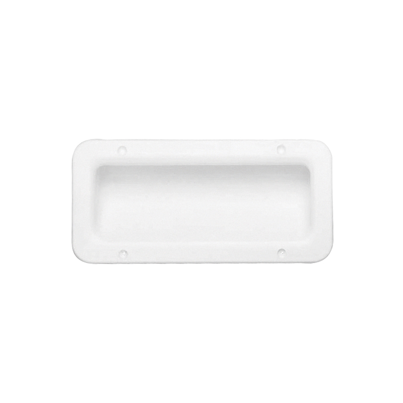 Maniglia in PVC bianco ad incasso. Può essere usata anche come portaoggetti, ideale per gli ochhiali da sole o piccoli oggetti. Dim mm. 85x175.