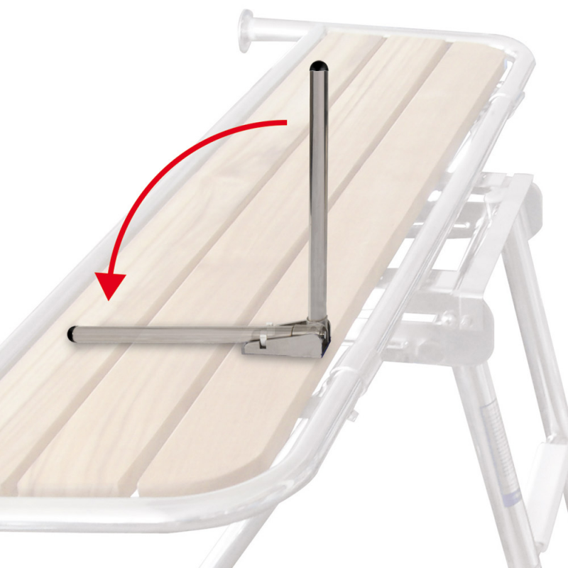 Maniglia abbattibile di risalita universale in acciaio inox AISI316 per plancetta di poppa. Dotata di chiusura a scatto sia in posizione di riposo che in uso.