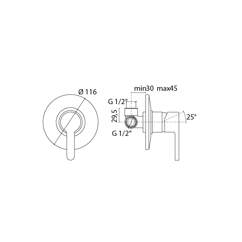 Rubinetto miscelatore per doccia a 3 vie montaggio a incasso. Ø mm 116, Portagomma 1/2”