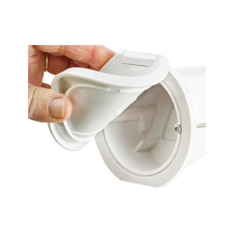 Contenitore porta doccia con coperchio flessibilein elastomero termoplastico. Resistente ai raggi UV e alle variazioni di temperatura. Coperchio Ø mm 96. Taglio Ø mm 70