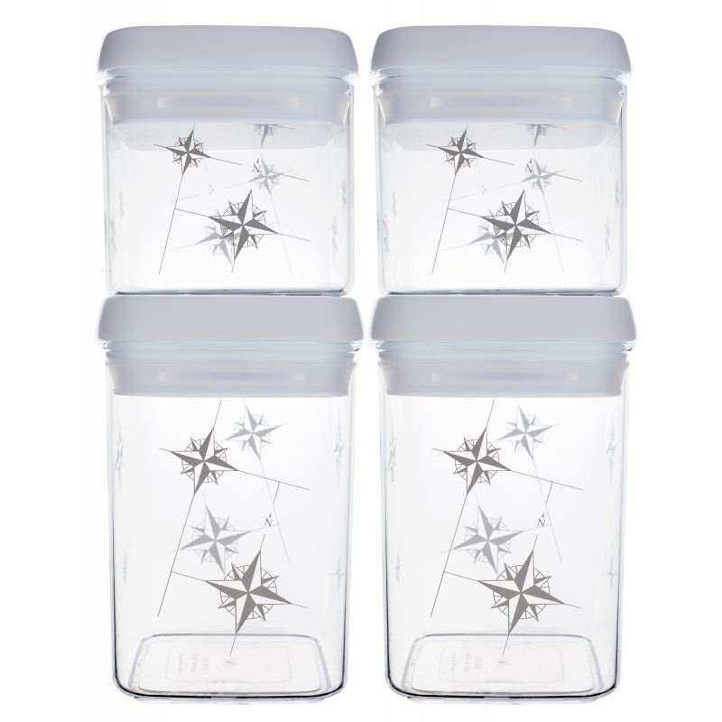 Barattoli da cucina trasparenti. Fabbricati in MS infrangibili, perfetto per la barca.Il coperchio ha una chiusura ermetica che preserva gli alimenti perfettamente. Capacità ml 800