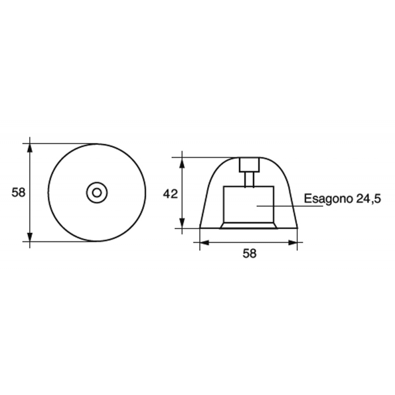 Ogiva esagonalein zinco per bow thrust Vetus serie Kgf 125/130/160 (rif. or. BP195)