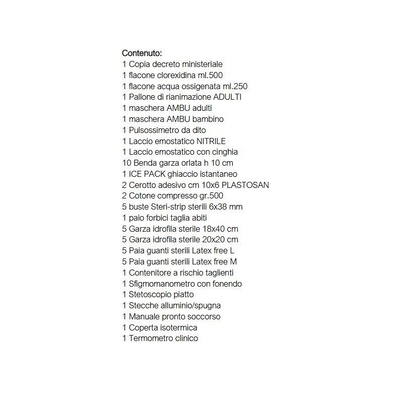 Package completo del materiale sanitario che deve far parte della dotazione di bordo come da nuovo D.M. 10/03/2022 TABELLA D G.U 108 10/05/2022