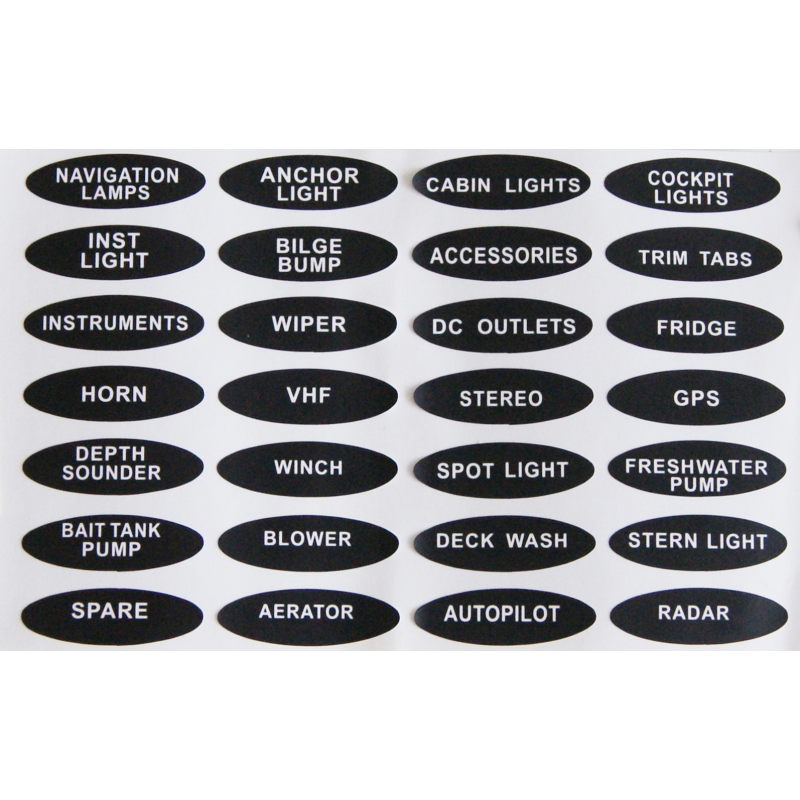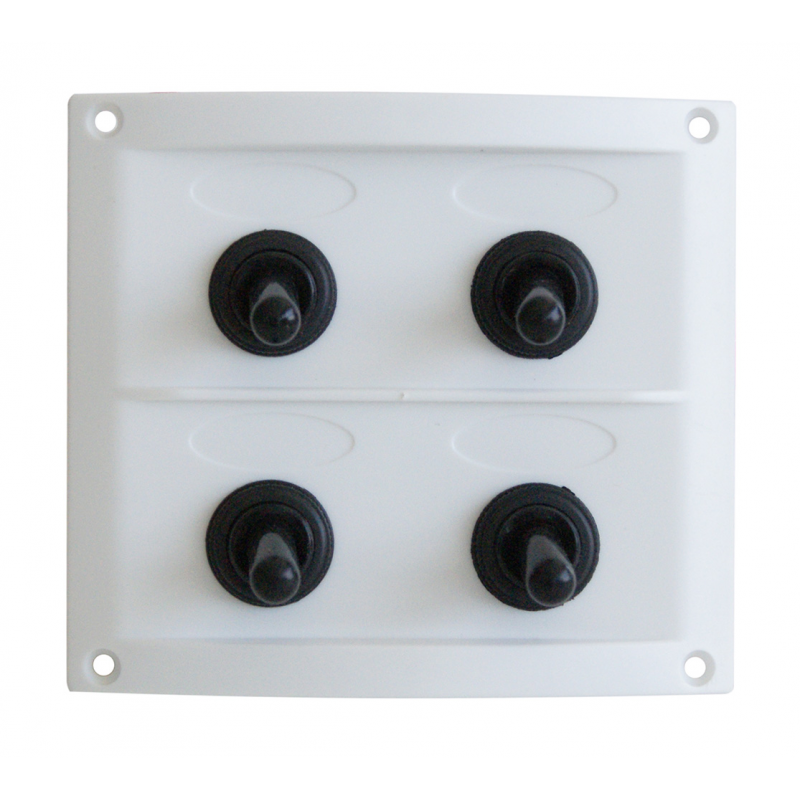 Pannello elettricoin ABS restistente ai raggi UV, interruttori a leva protettida cappucci in gomma, con fusibili lamellari da 15 Ampin linea dietro il pannello e simboli adesivi.