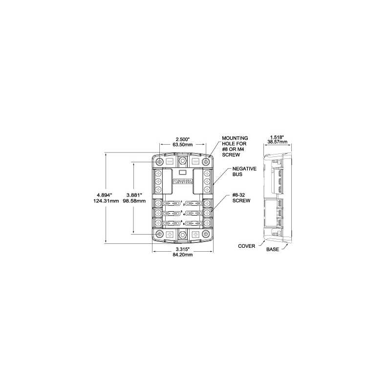 Pannello porta fusibili ST Blade in policarbonato rinforzato, per fusibili ATO/ATC. Barre e contatti in rame argentato. Barra di distribuzione polo negativo inclusa. Copertura isolata. Rif. originale 5025