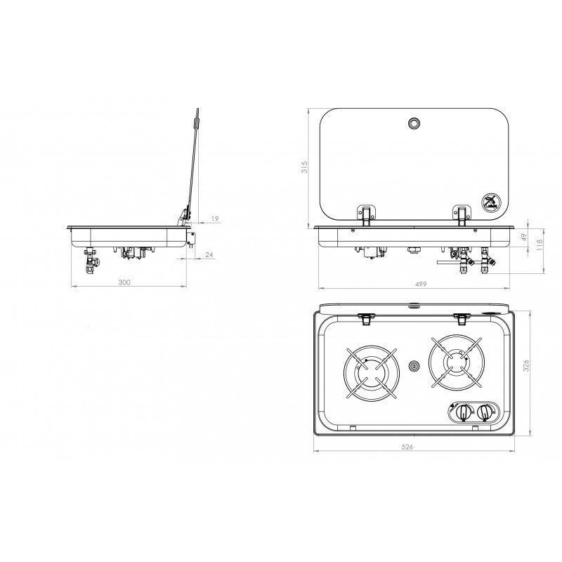 PIANO COTTURA 2 FUOCHI CON COPERCHIO
